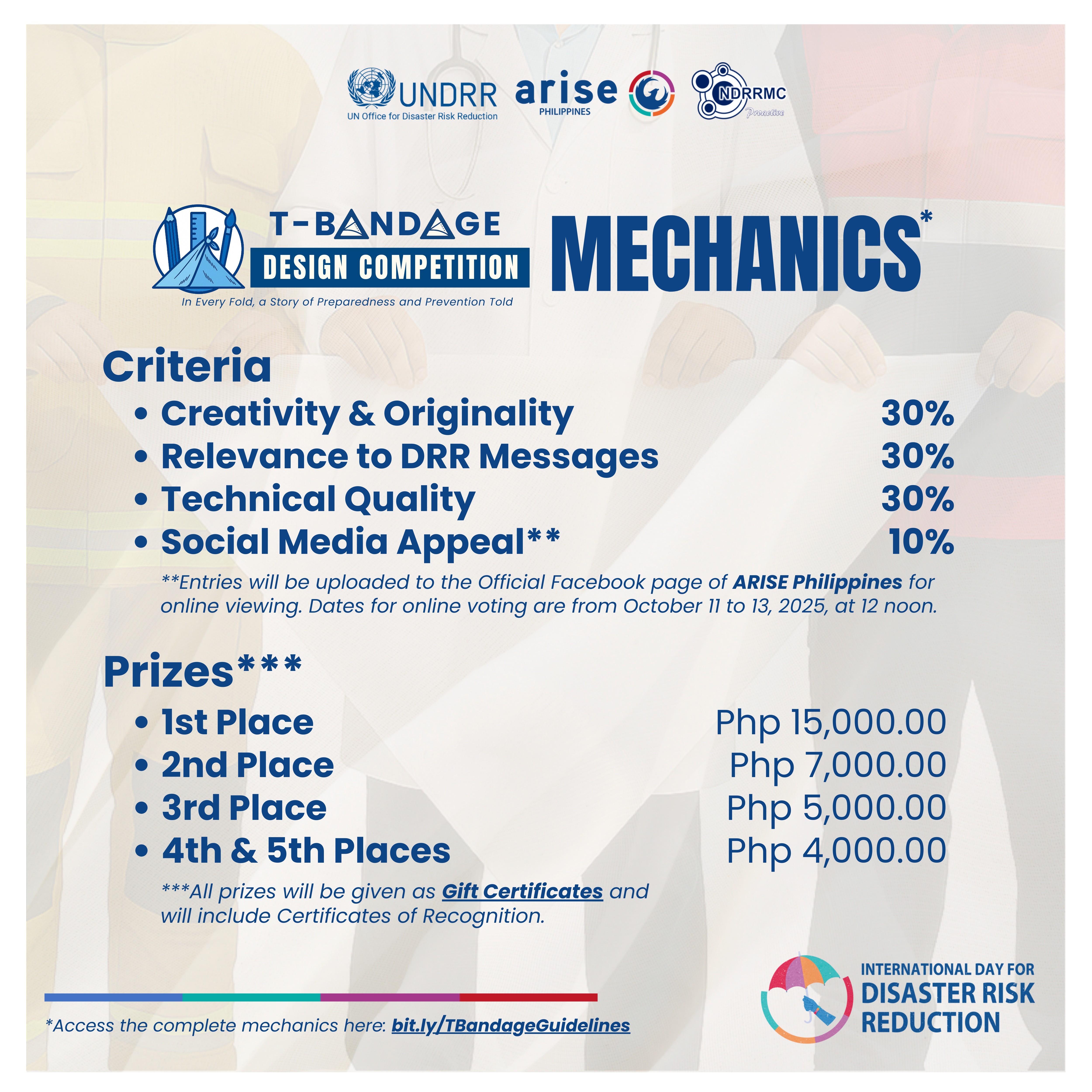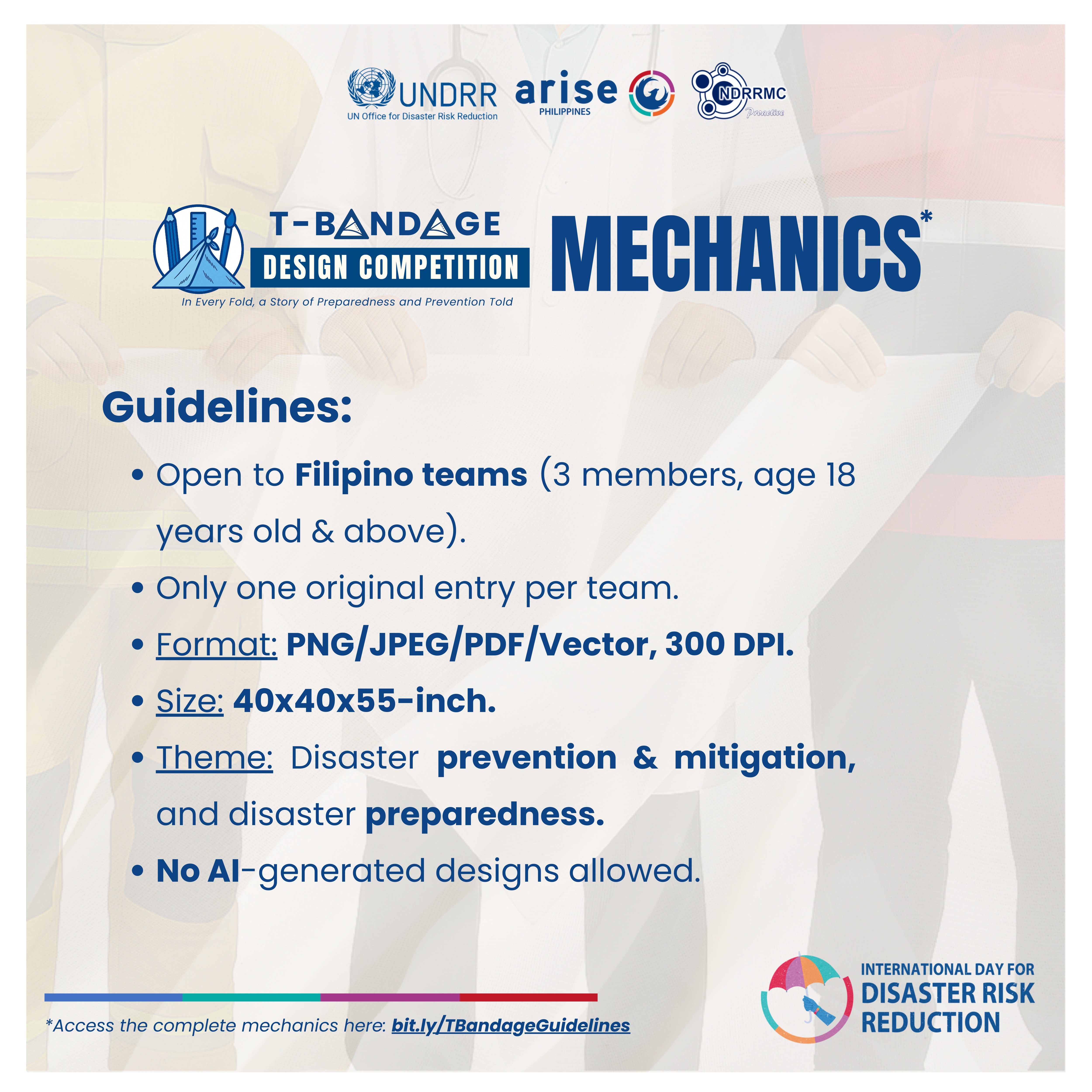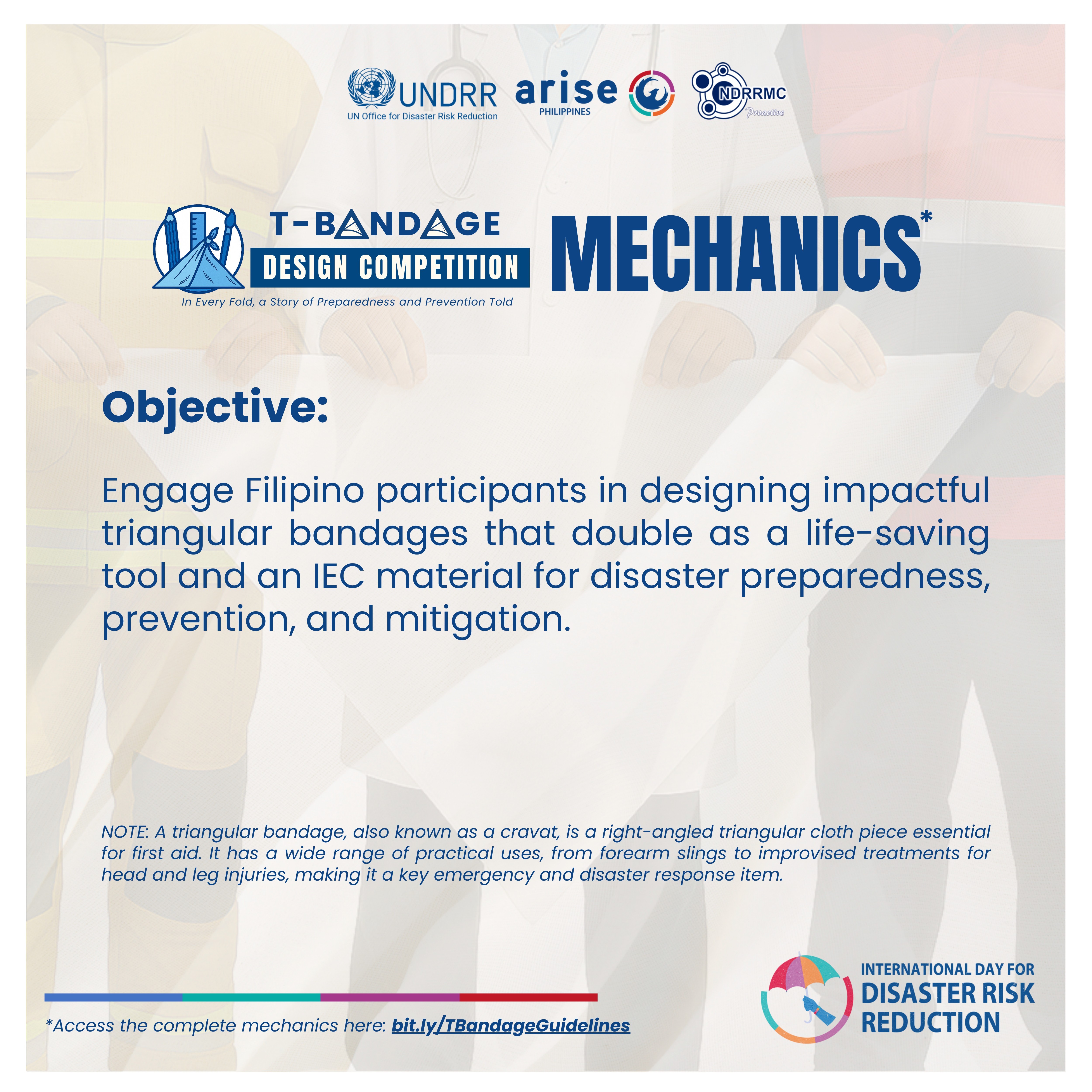 In observance of the International Day for Disaster Risk Reduction (IDDRR) 2025, ARISE PHILIPPINES is hosting the Triangular Bandage (T-Bandage) Design Competition.